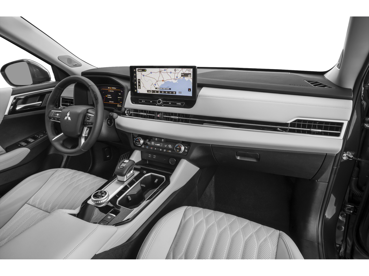 - Radio: AM/FM 12.3" Navigation w/Smartphone-Link -inc: wireless Apple CarPlay and Google Android Auto, Mitsubishi Connect w/5-year safeguard trial and 1-year remote services trial (mobile app enrollment required), HD radio, Bluetooth® wireless technology, steering wheel controls for phone, audio and voice recognition, 2 USB-C ports, SXM all access and SXM traffic & travel link w/90-day subscription and dynamic sound Yamaha ultimate system w/12 speakers